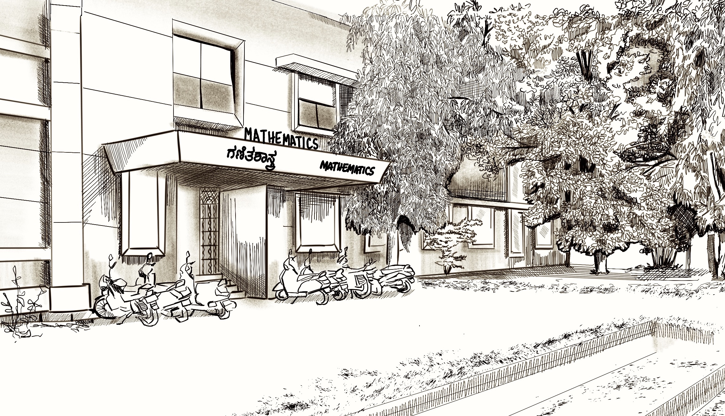 Front elevation of the maths department at Manasagangotri. Poornima Belavadi