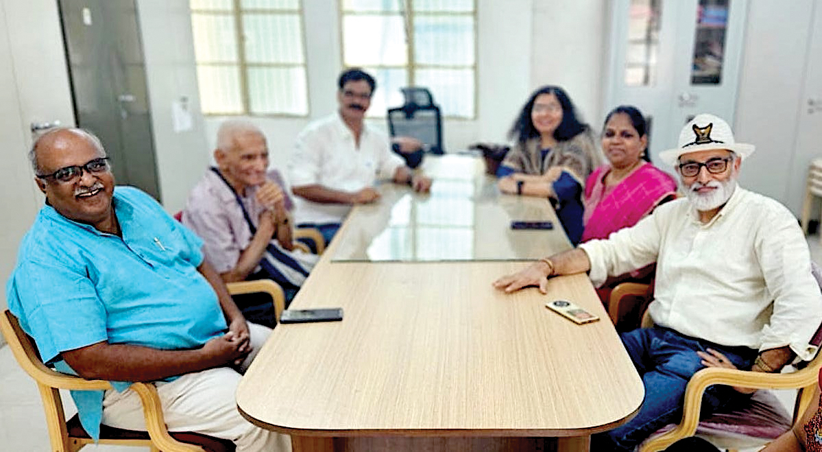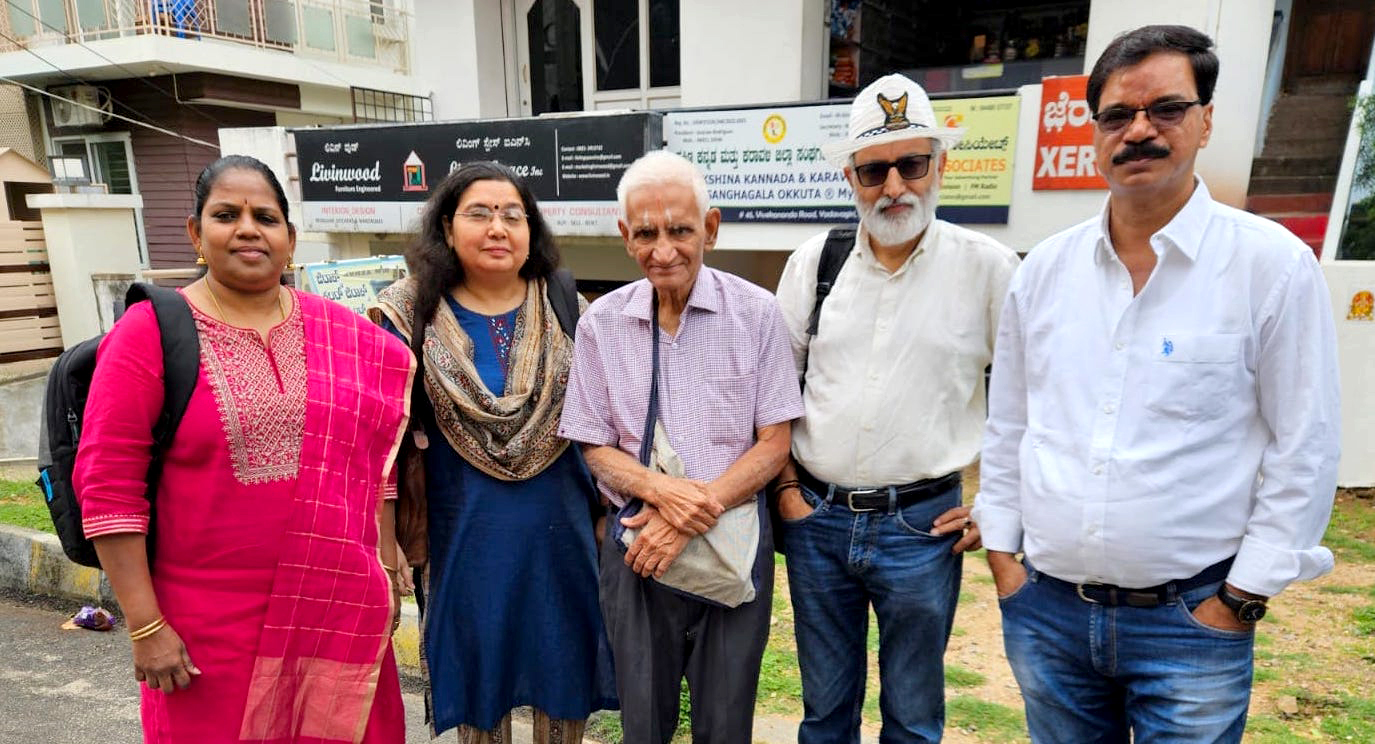 Sampathkumar with the RMS team visiting the publication office in Mysore. Kotyada Srinivas